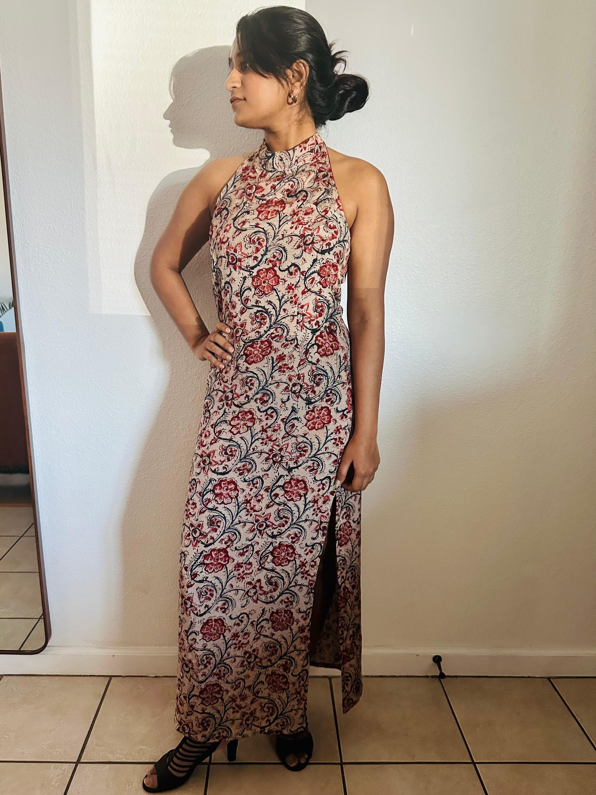 This backless modal silk dress brings centuries-old art into the spotlight with a seriously sassy twist. Featuring a delicate tie-up detail at the neck, it’s equal parts flirty and fierce. The smooth, breathable modal silk drapes like a dream, while the side slit adds just the right amount of drama—perfect for sundowners, cocktail nights, or dancing till the DJ drops. Handcrafted with love and made to turn heads, this dress isn’t just a vibe—it’s a whole moment.