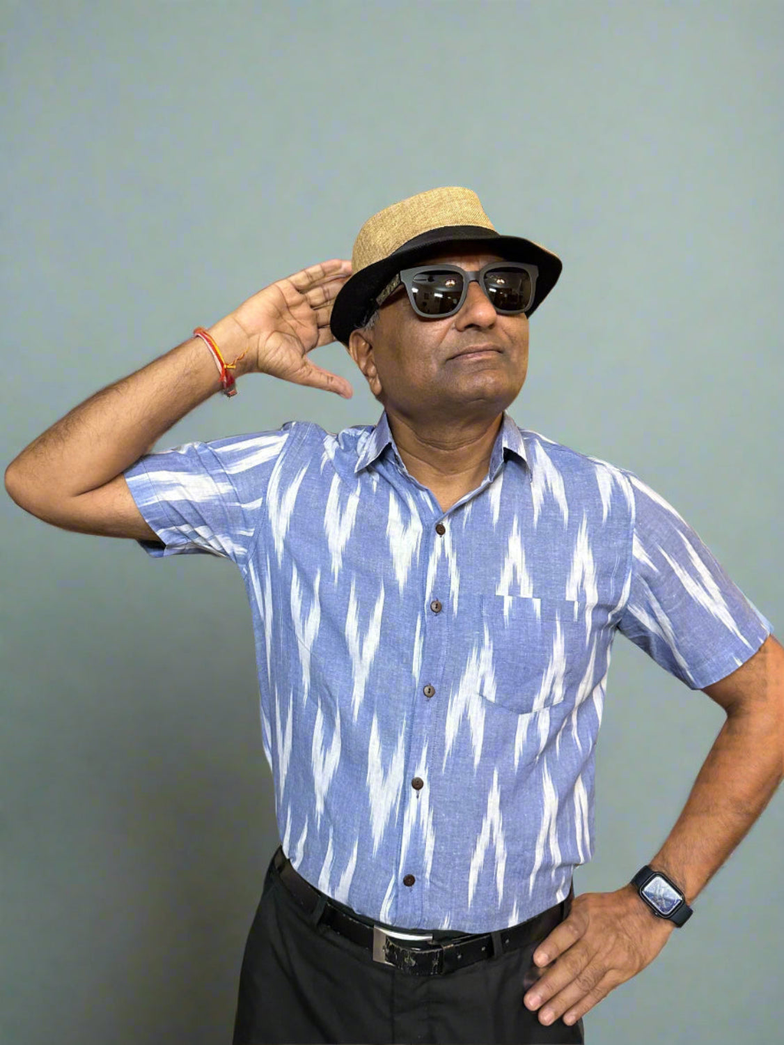 Effortlessly elevate your summer style with our Light Blue Ikat Half Sleeves Shirt. Made from 100% breathable cotton, this shirt offers maximum comfort while keeping you cool. The unique Ikat design adds a touch of sophistication to any outfit. Stay stylish and comfortable in the warm weather with our must-have shirt.
